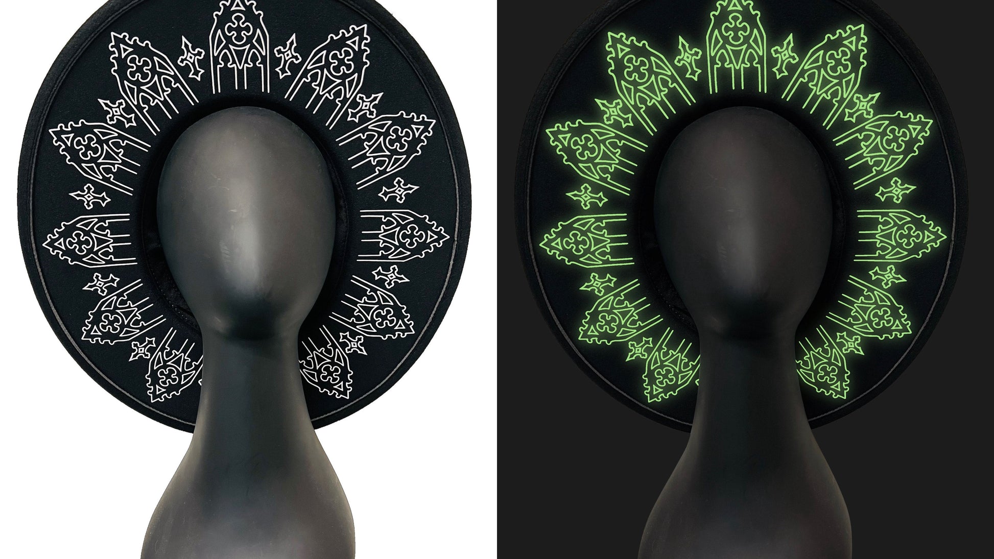 Vegan Felt Wide Brim Hat - XL Brim - Wrought Iron - GLOW IN THE DARK
