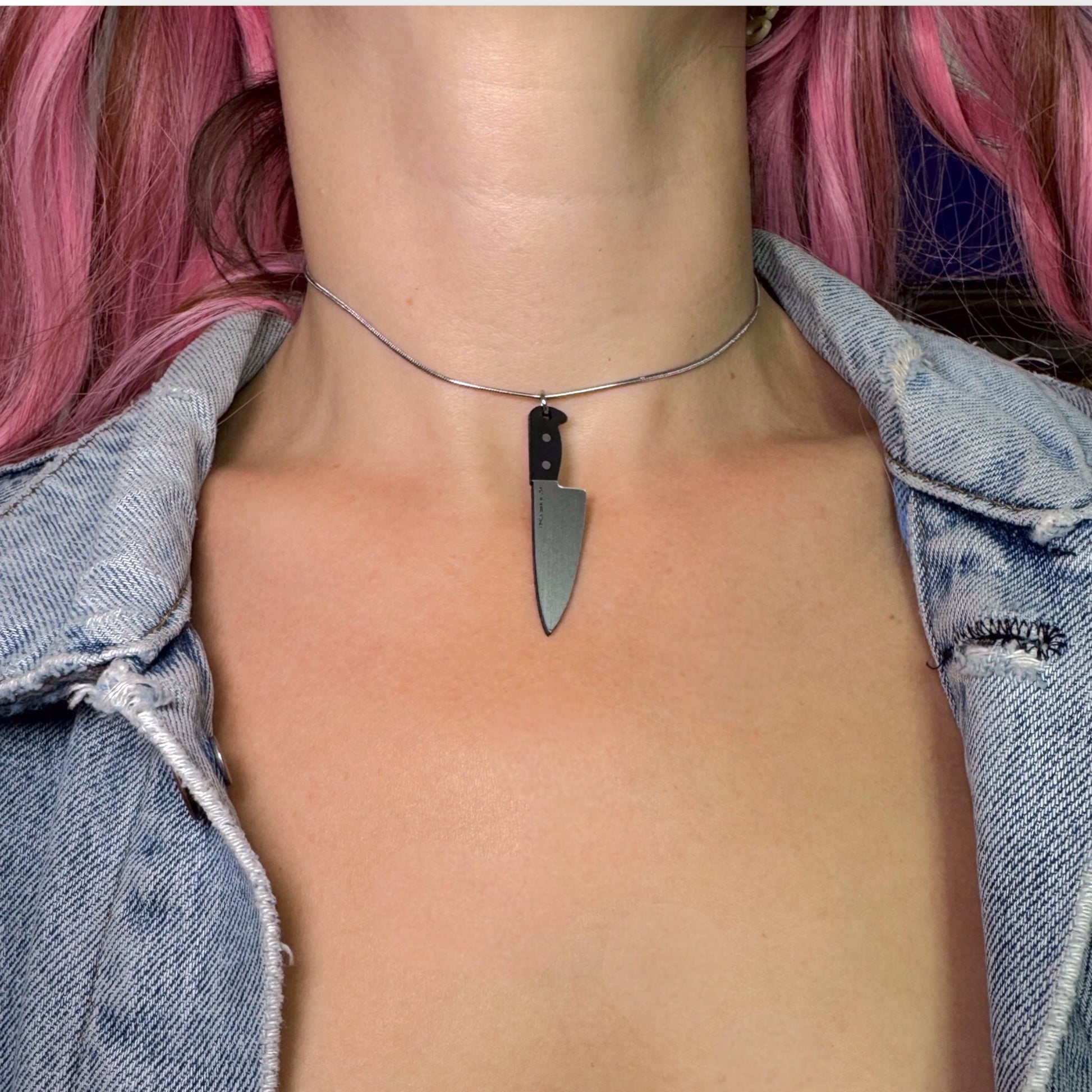 Last Chance! Chef's Knife Necklace in Silver/Black