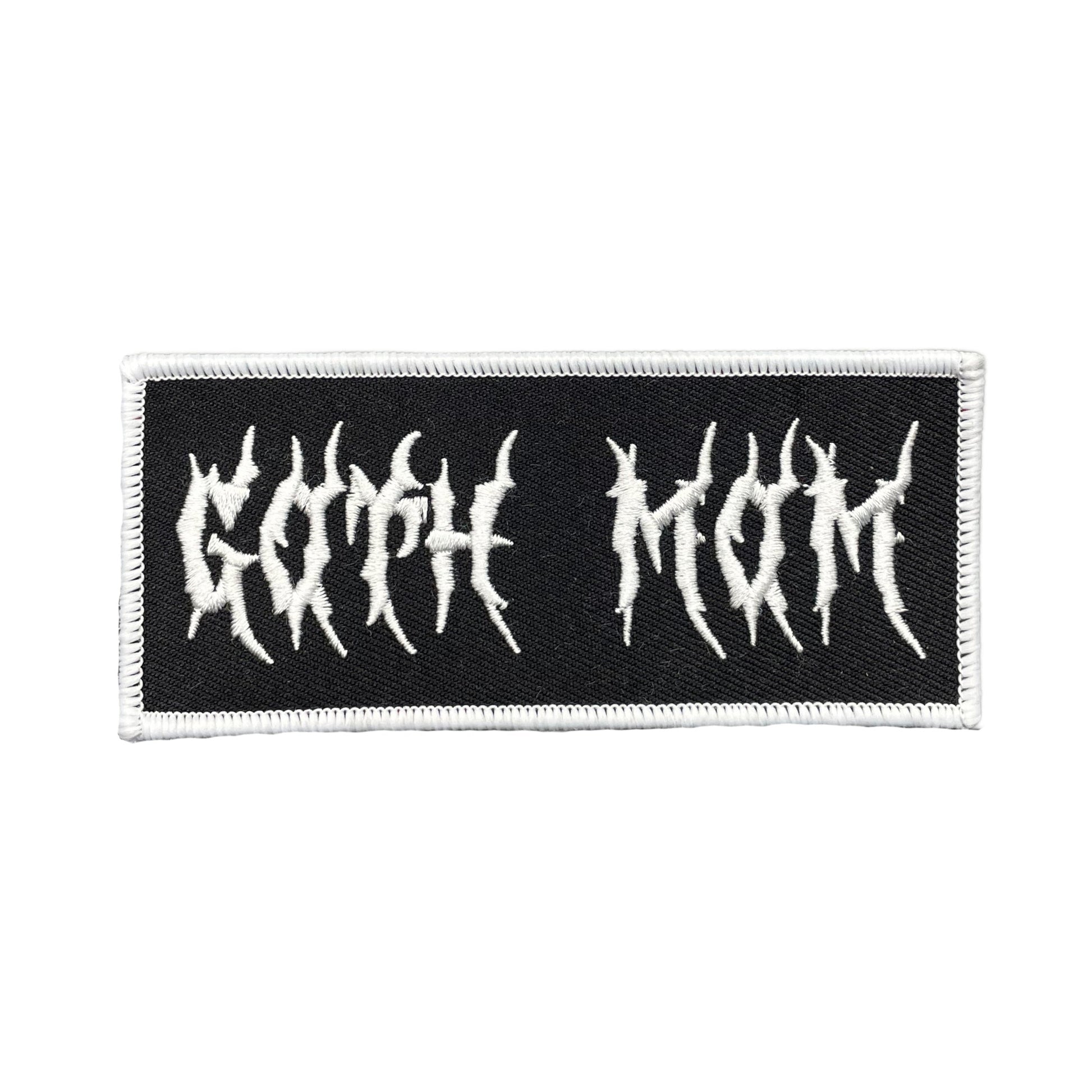 Who says mom's have to forget their love of dark music and heavy metal style? This "Goth Mom" patch by us features a death metal-esque font. This patch has an iron on backing.. 4.5" inch wide 2" embroidered patch on a black twill background. This was designed and produced for Witching Hour Baby and is only available on our site (and our socials).